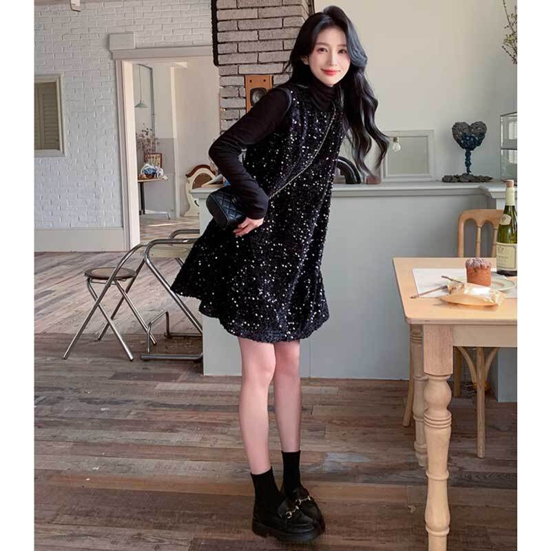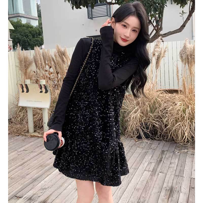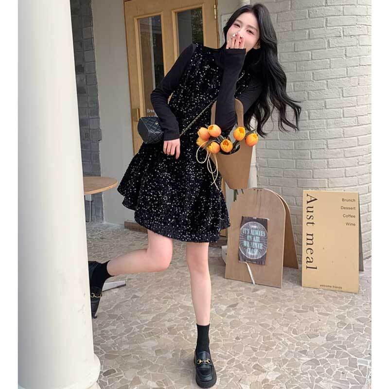 ブラックでも華やかさがあり、デートや特別な日にぴったり。