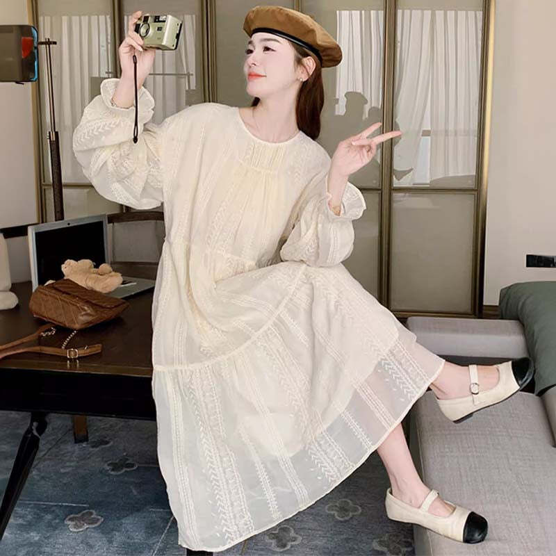体のラインが出にくいゆったりとしたAラインデザイン。