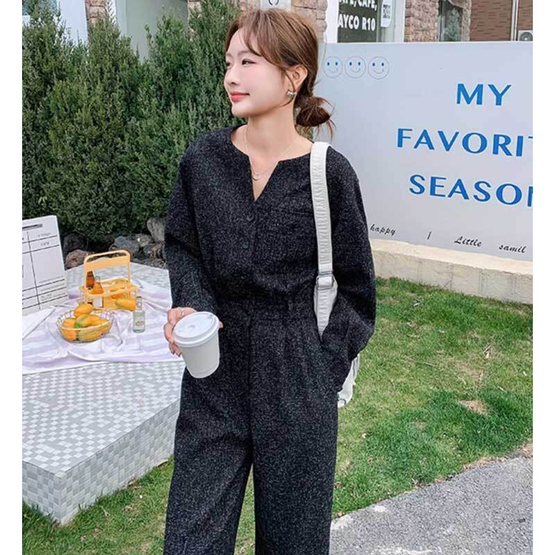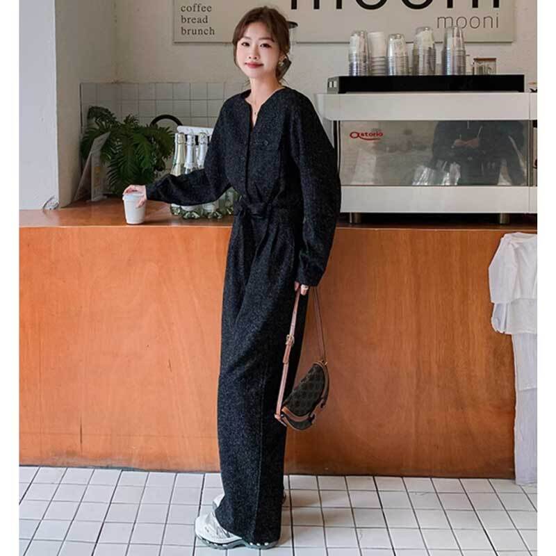 ノーカラーブラックジャンプスーツ