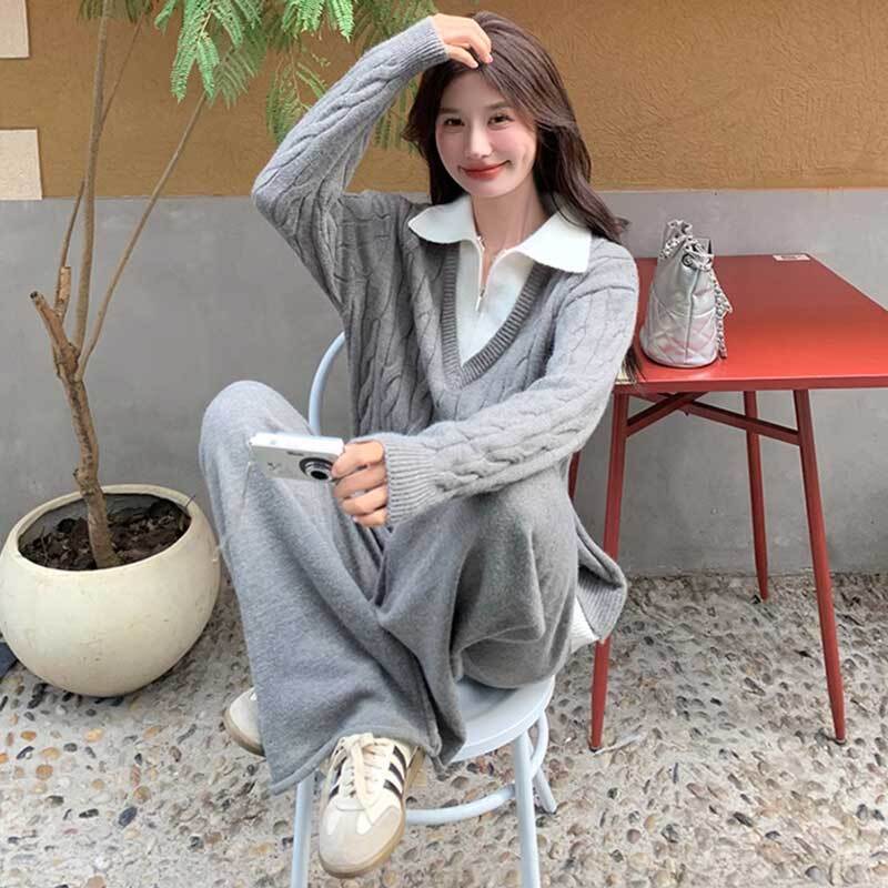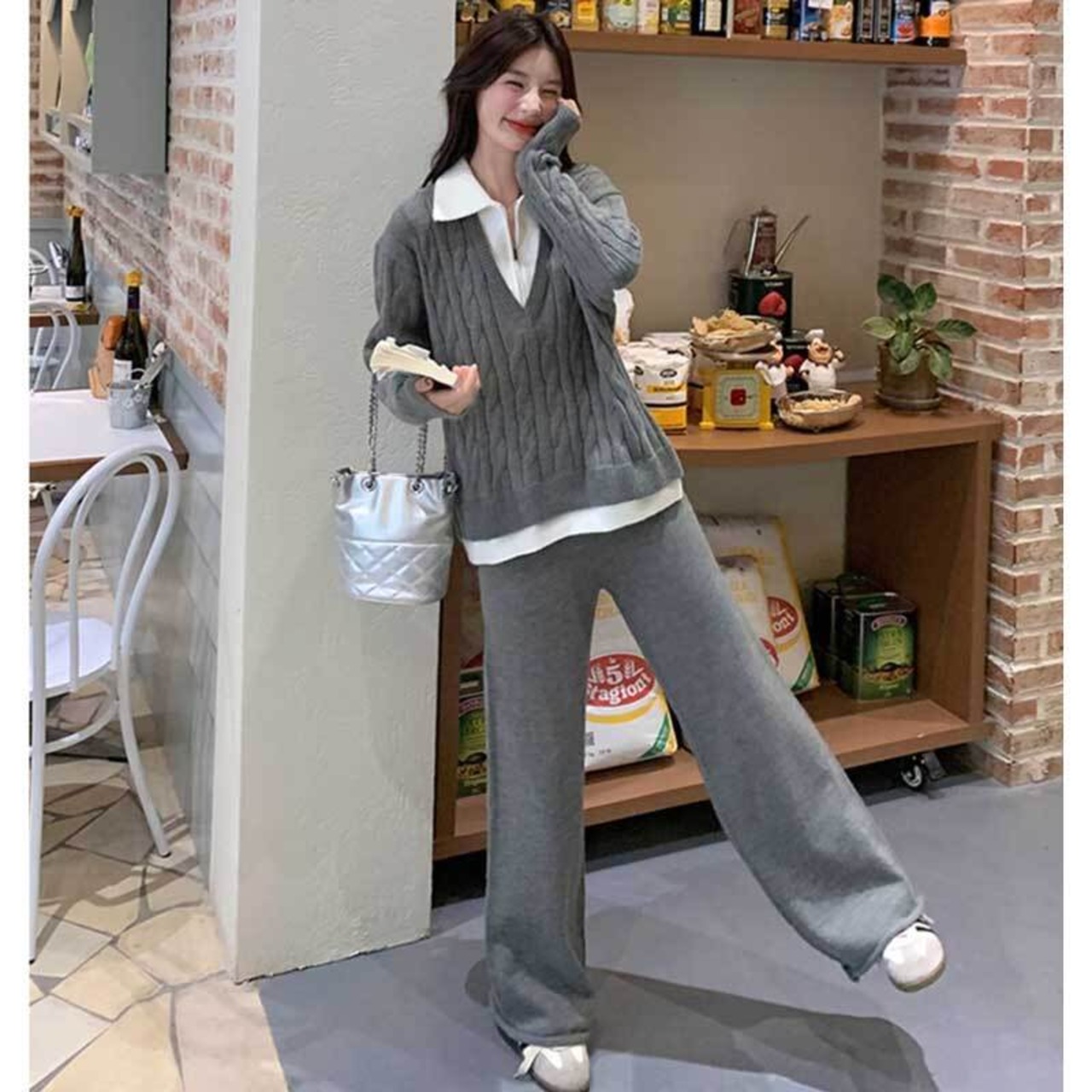 季節感たっぷりでトレンドライクな、ケーブル編みニット×ニットパンツのセットアップが登場。
