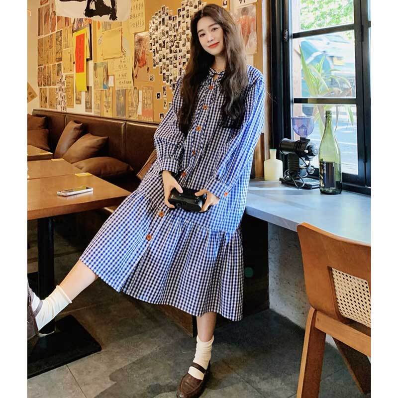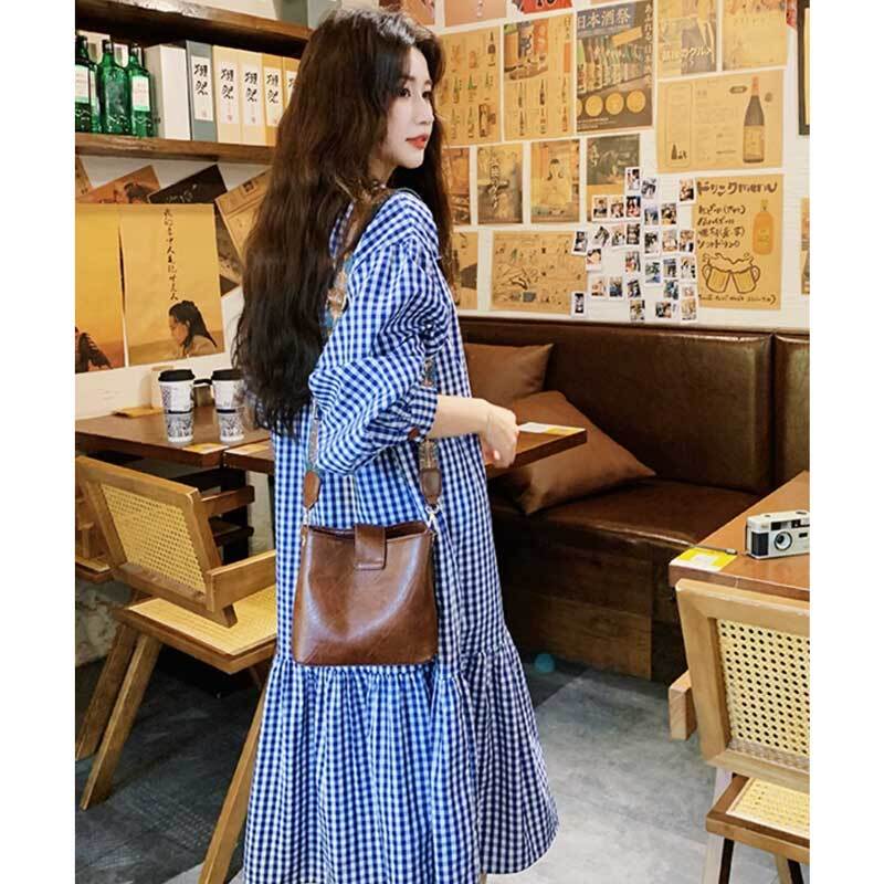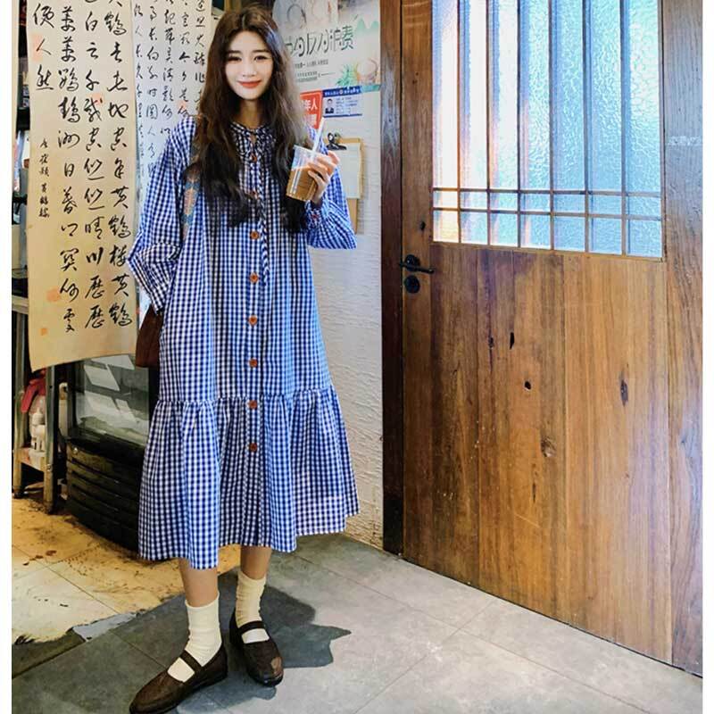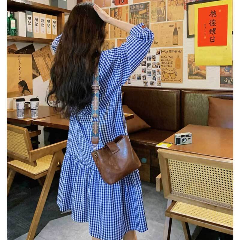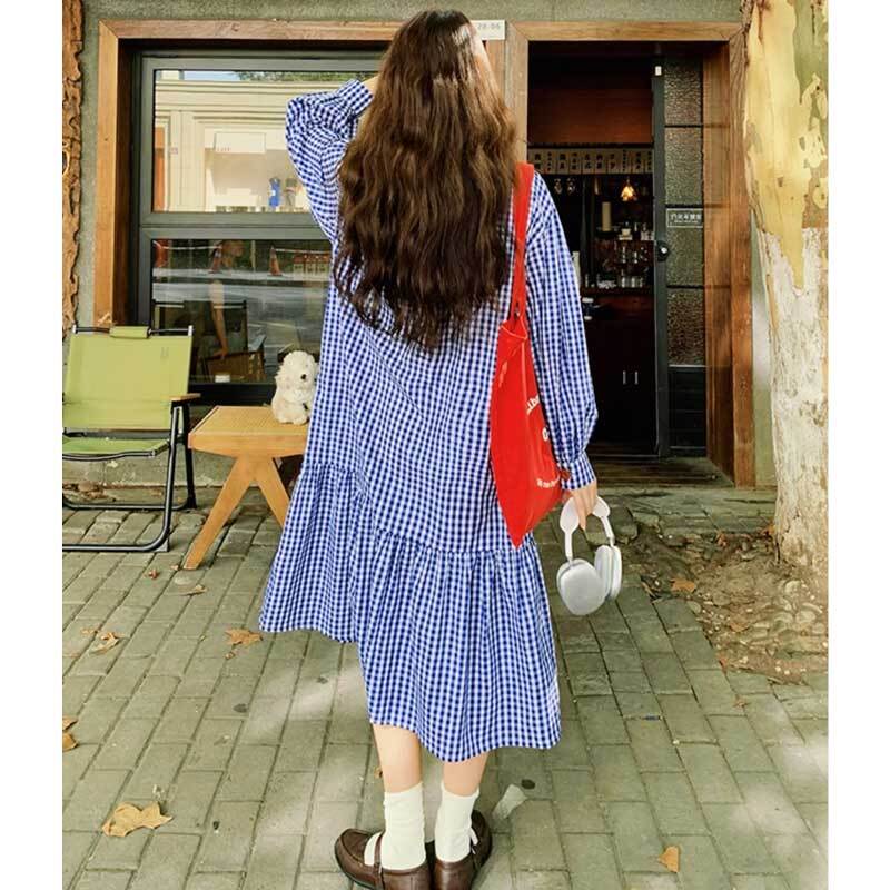 レトロかわいい♡ギンガムチェックワンピース/ロング丈・ゆったりシルエット