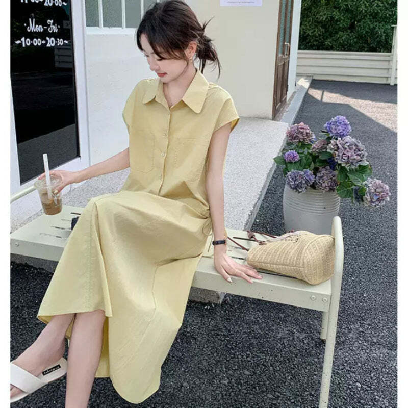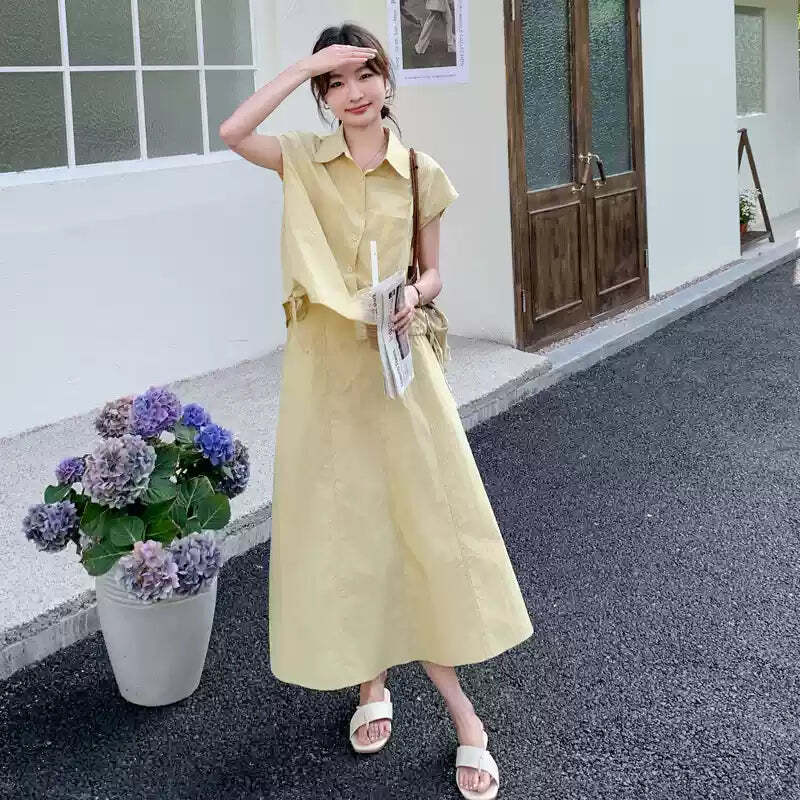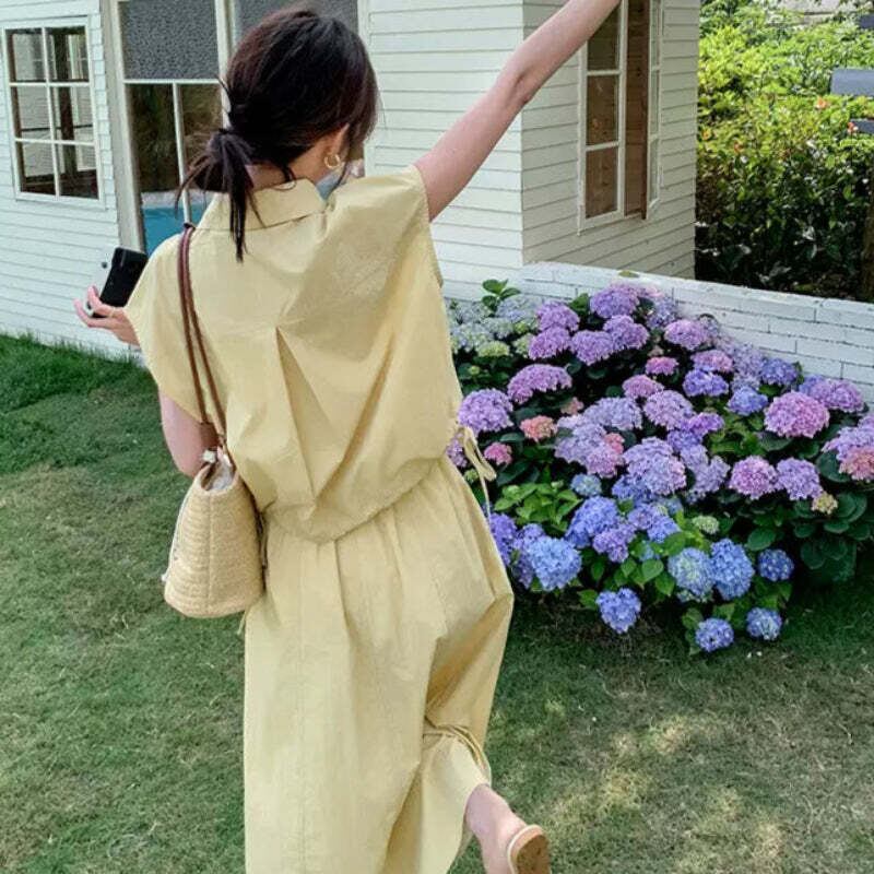 爽やかイエローのシャツセットアップ風ワンピース