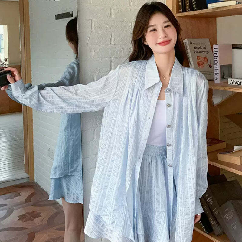 爽やかナチュラル♪シアーセットアップ風シャツワンピース