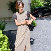 リラックスムード漂うボーダーデザインのマキシ丈ワンピース。