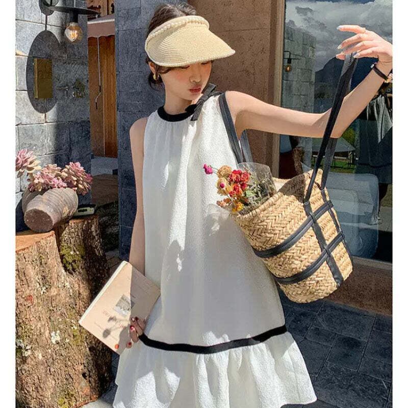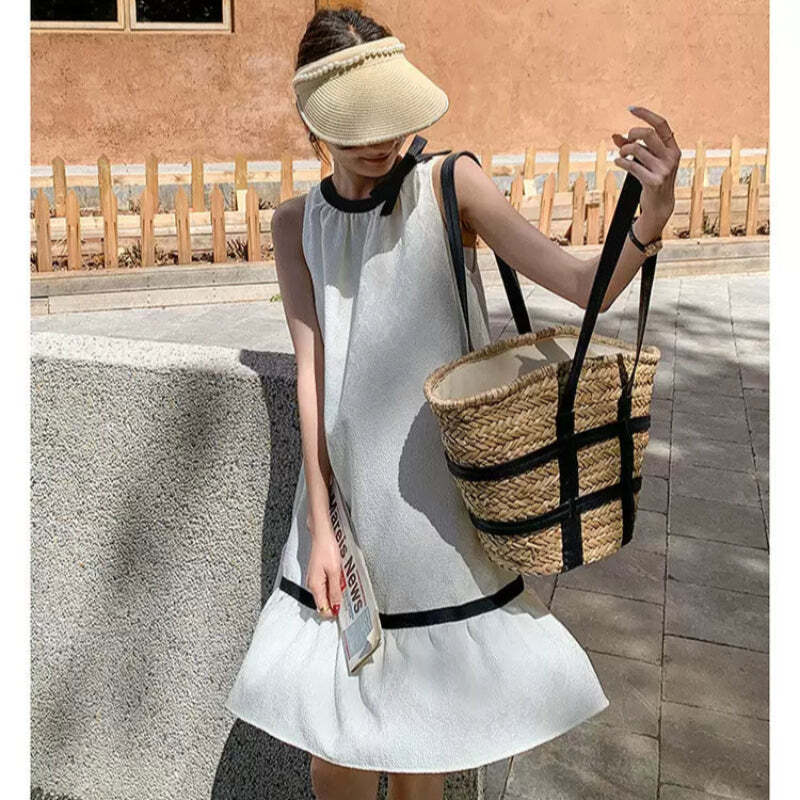 大人可愛いを叶える、バイカラーデザインのノースリーブワンピース。