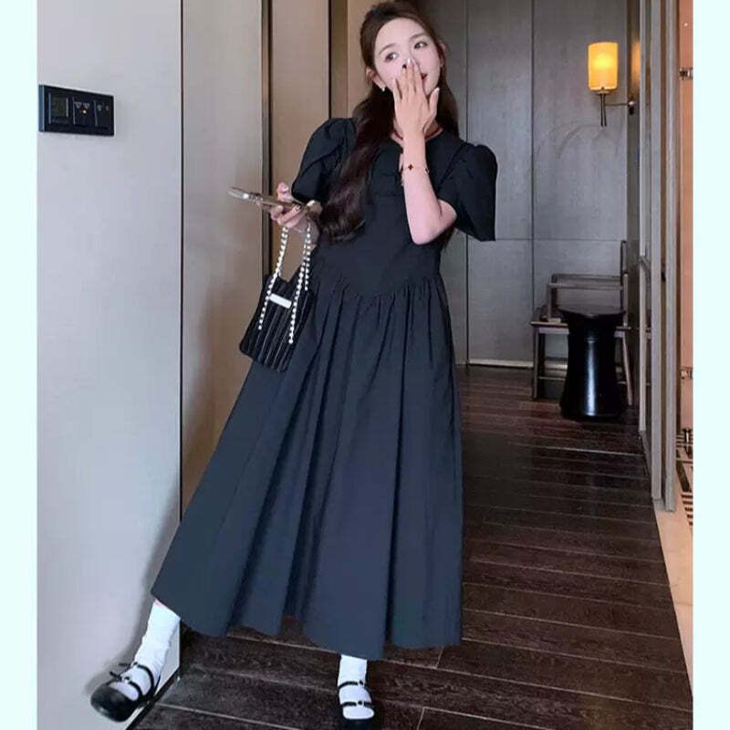 パフスリーブロングワンピース|上品ブラックで叶える大人可愛い着こなし