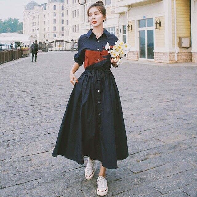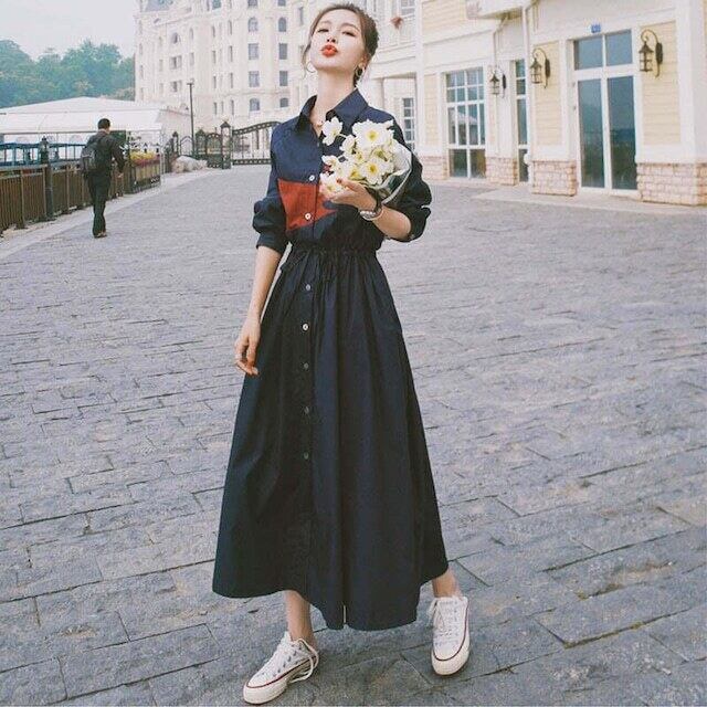 Aラインシルエットのゴージャスなシャツドレス。