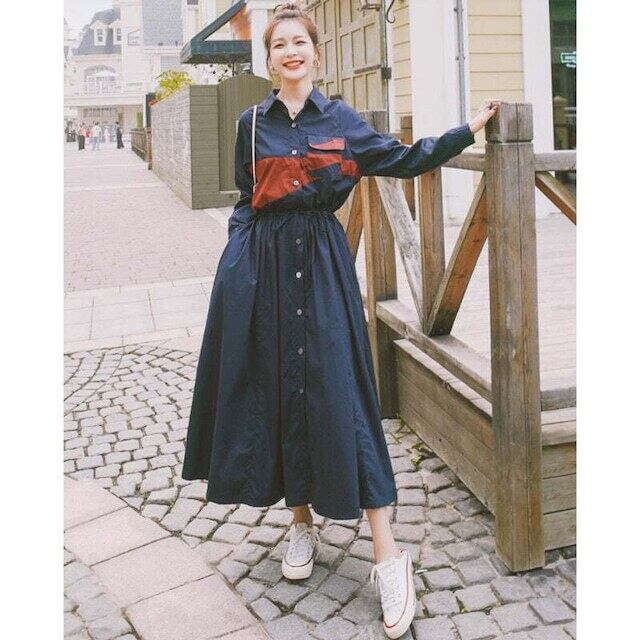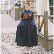 ウエストギャザーシャツワンピース