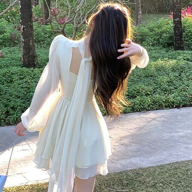ウエスト部分はコルセット風になっており、ふんわりとしたコルセットを引き締めます。