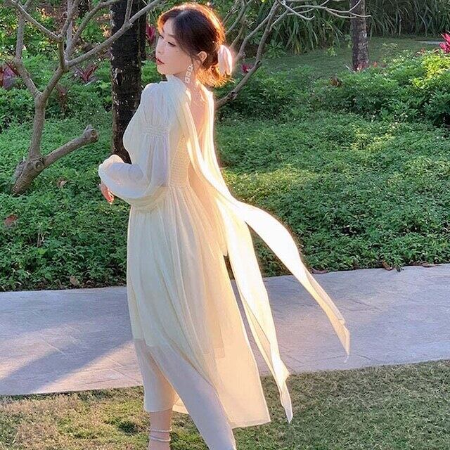 透け感のある柔らかな生地が、ふんわりと軽やかな印象を与えます。