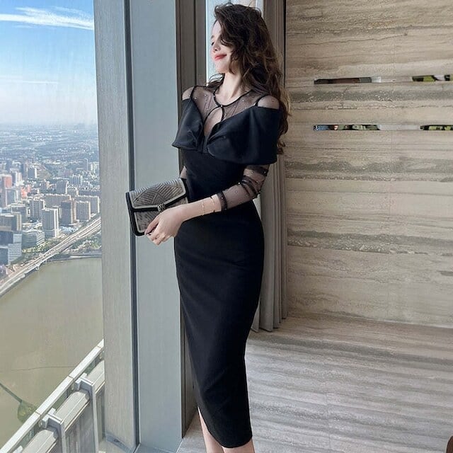 ボディコンシャスなペンシルドレス。