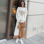 スウェットコンビアシメスウェードフリルスカートワンピース