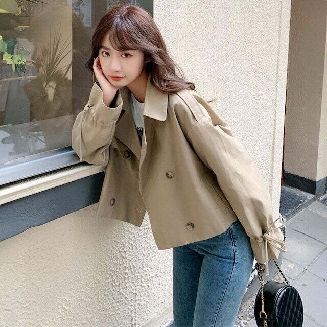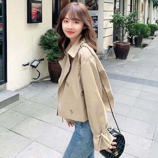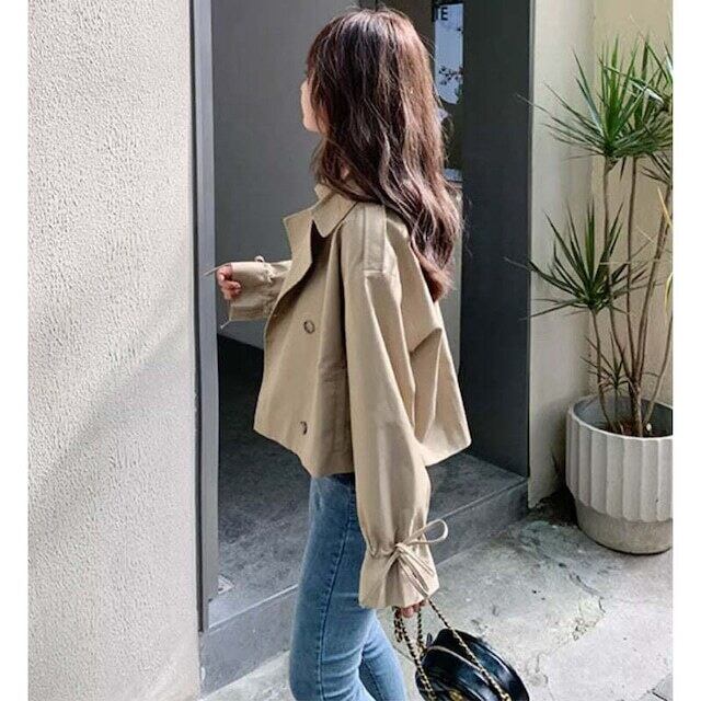 ペプラム袖ショート丈トレンチコート