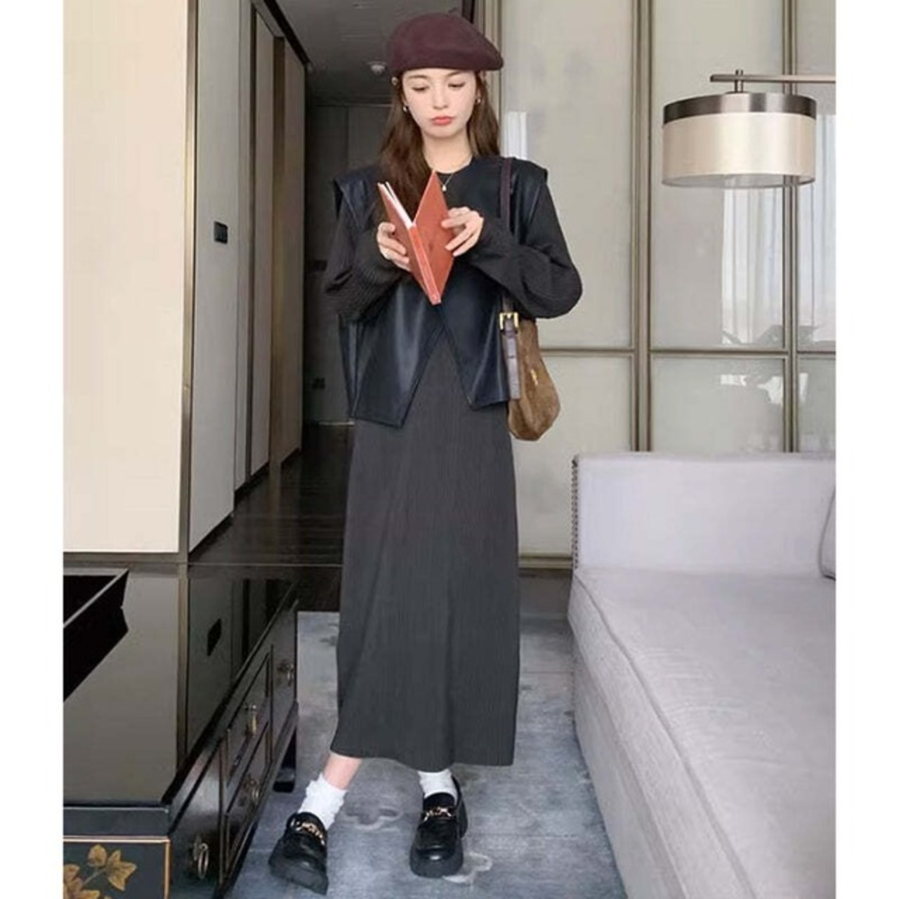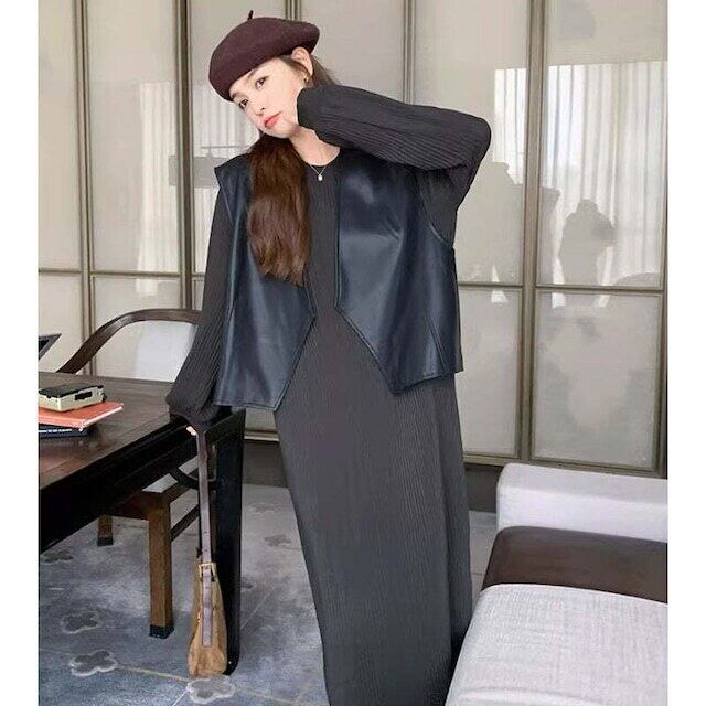 シンプルなワンピースも、ベストを合わせるだけでトレンド感のある着こなしに!