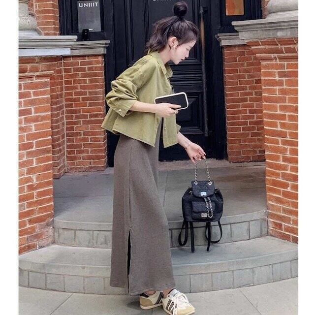 クロップドオーバーシャツ×サイドスリットマキシキャミワンピース