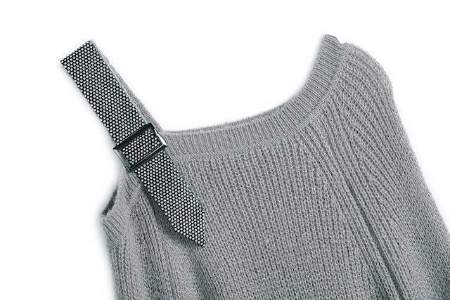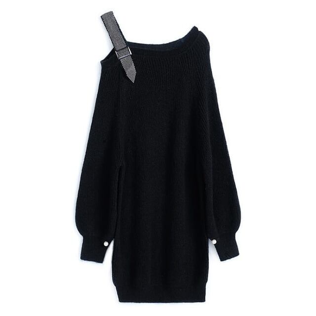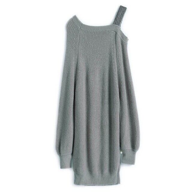 アシメベルトワンショルダーニットワンピース(2COLORS)
