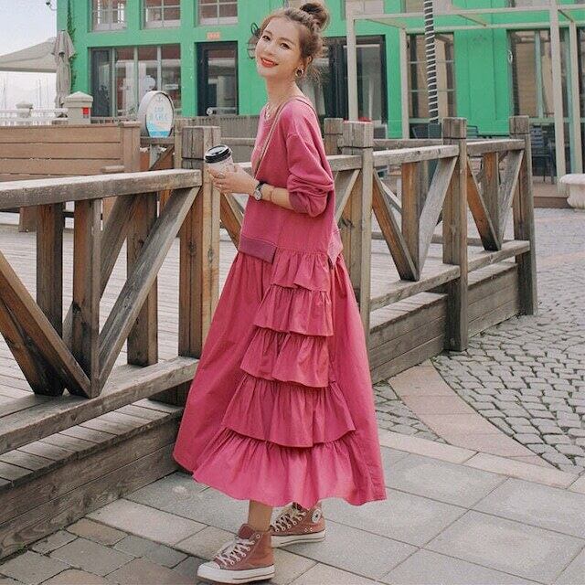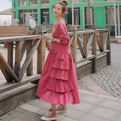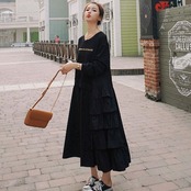 アシンメトリーサイドフリルワンピース(2COLORS)