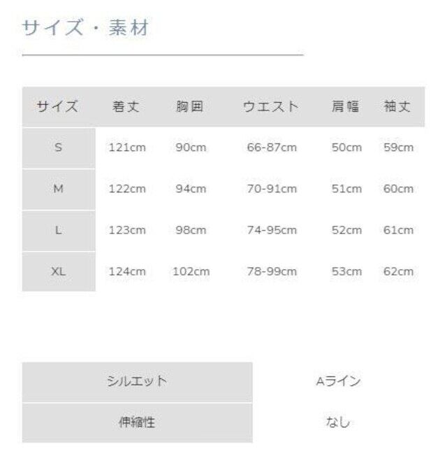 サイズ 着丈 胸囲 ウエスト 肩幅 袖丈