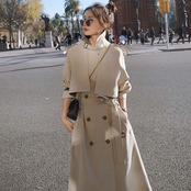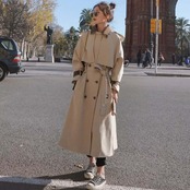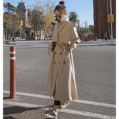 ロング丈のトレンチコート。