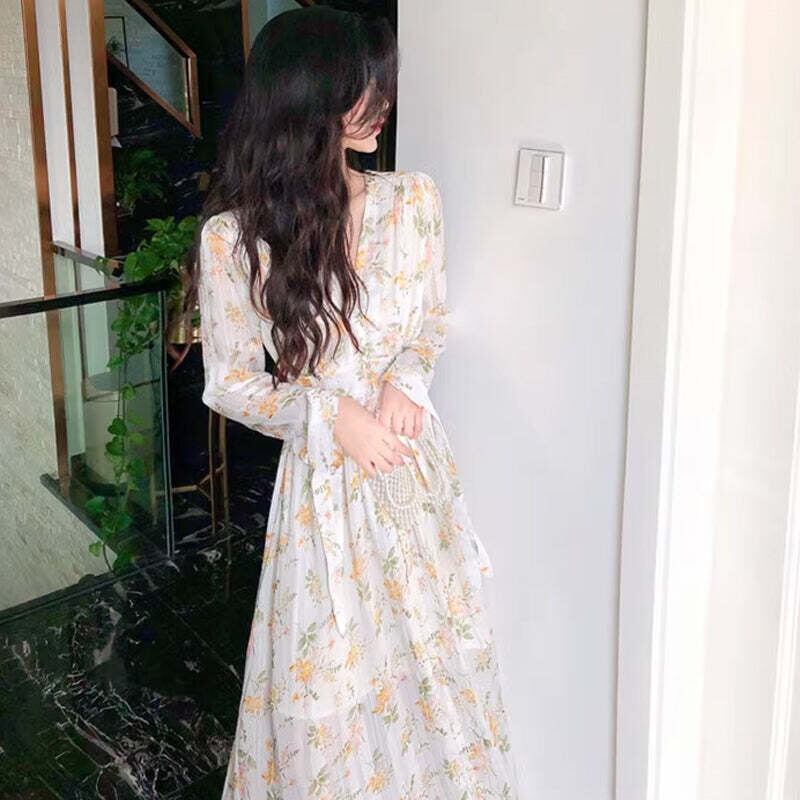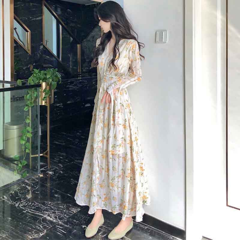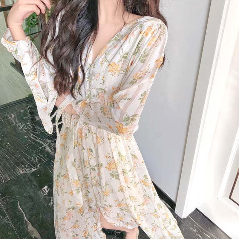 Vネックラインとスカートのスリットがゆったりとしたフィット感を演出。