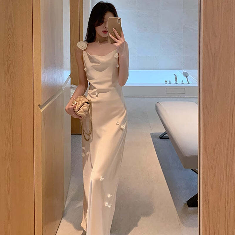胸元のドレープがちょっぴりセクシーな肌見せ。
