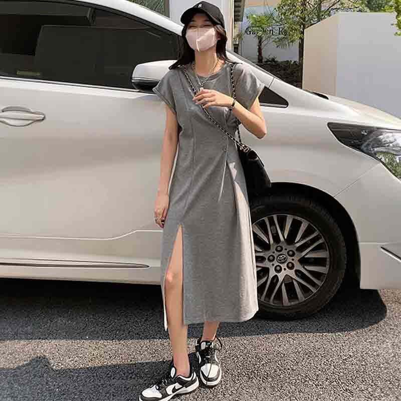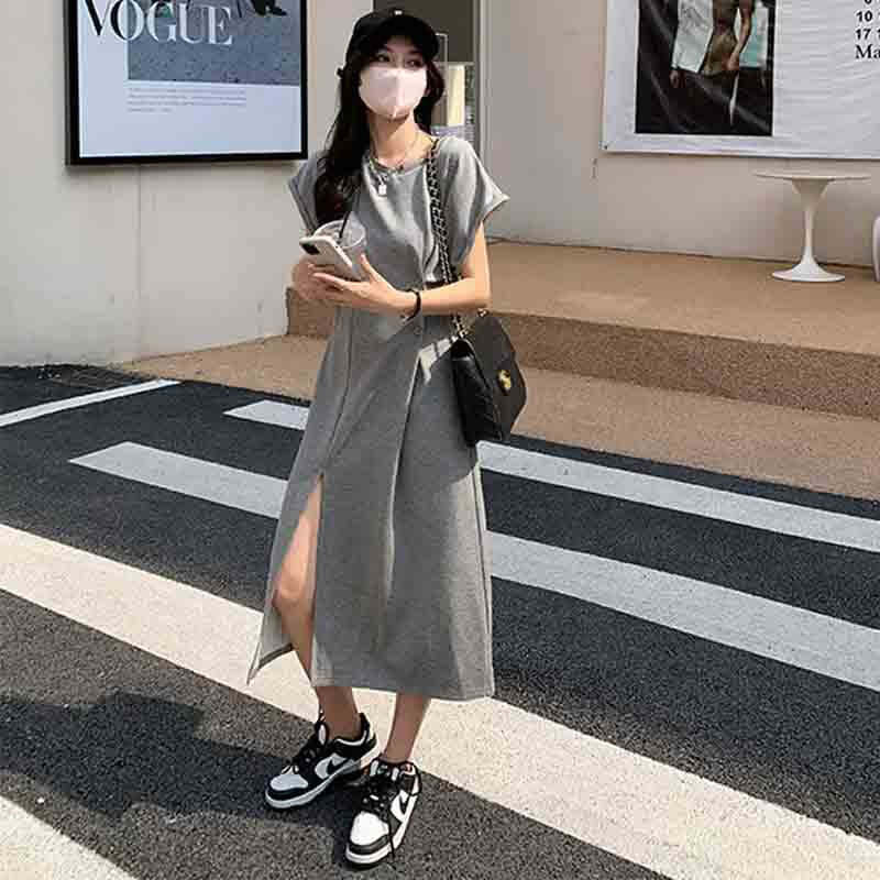 フレンチスリーブとサイドスリットのカジュアルTシャツワンピース。