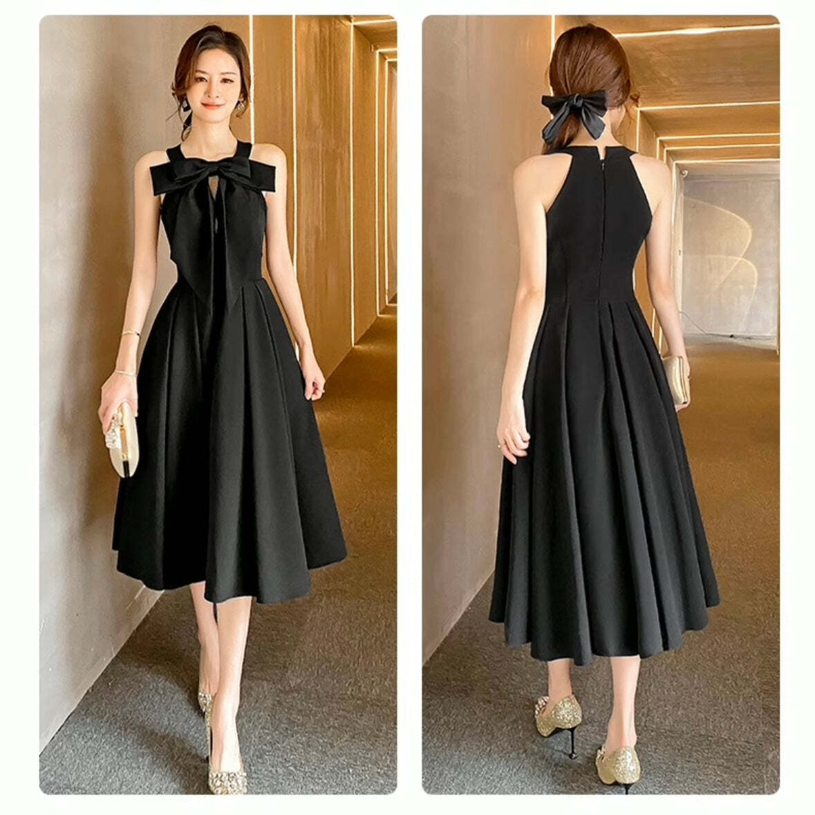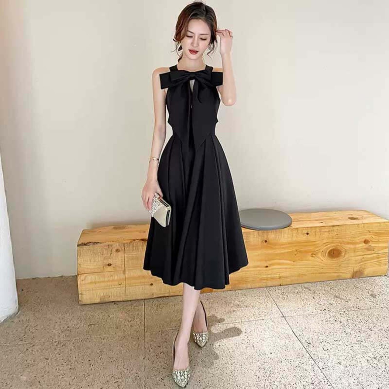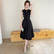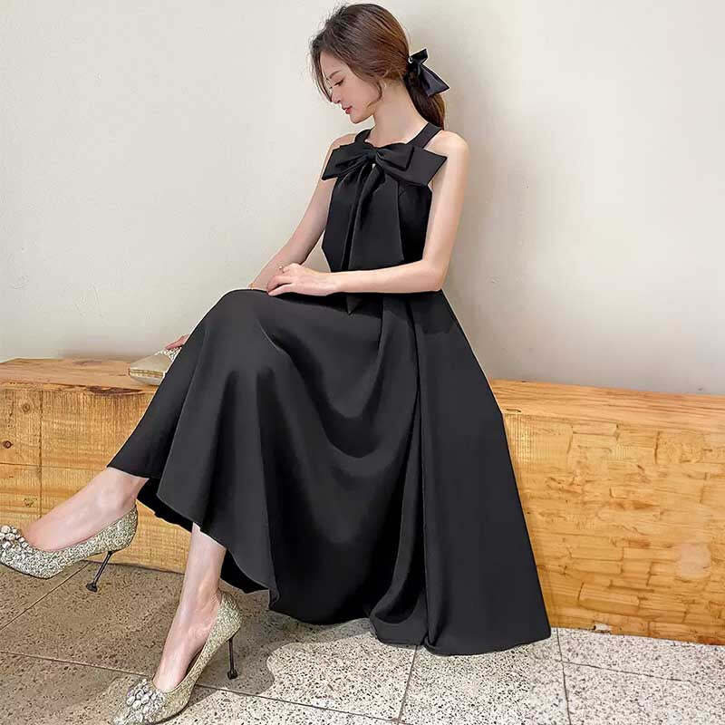ブラックリボンミモレ丈ドレス