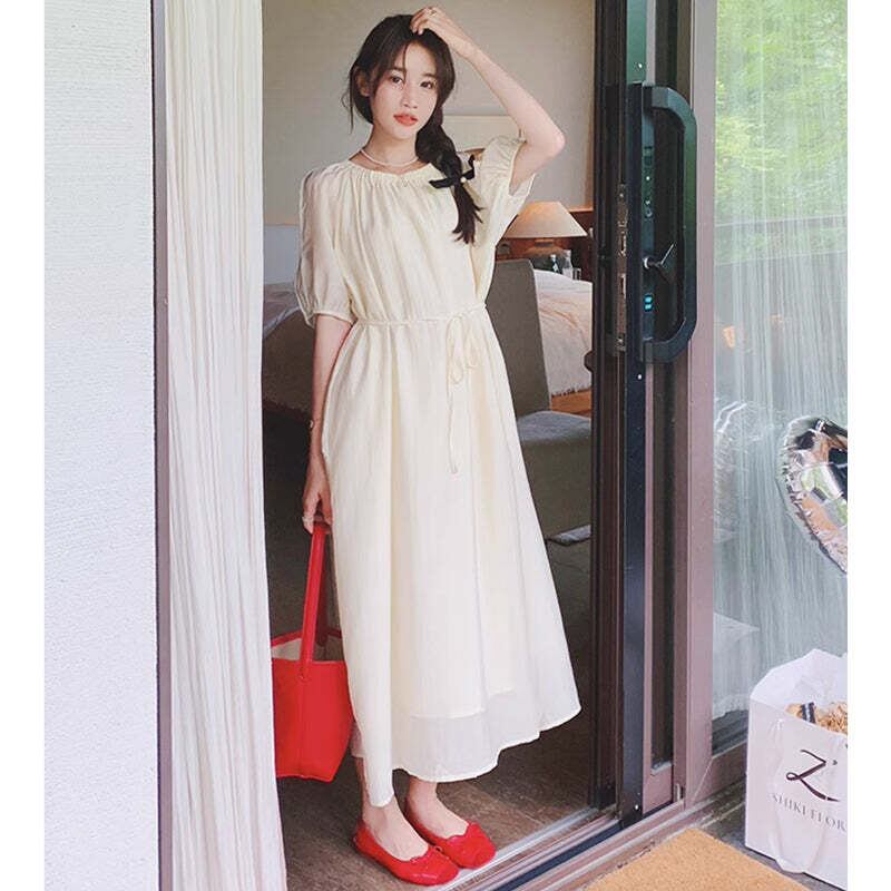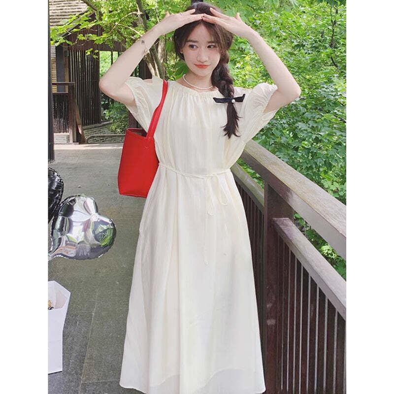 華奢なリボンでウエストを絞れば、シルエットの調整が可能。