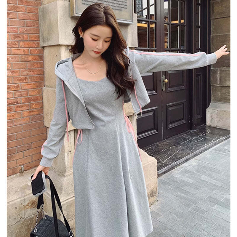 ピンクラインパーカー×サイドレースアップワンピース