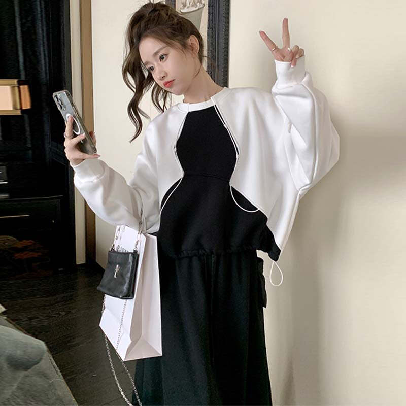 ボレロを羽織っているような変形切り替えデザインのトップス。
