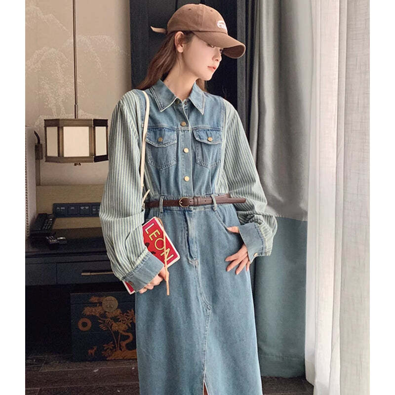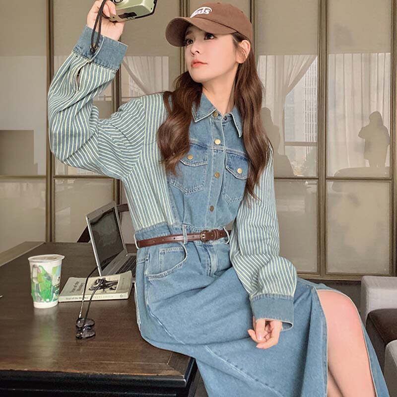ストライプ切り替えデニムワンピース
